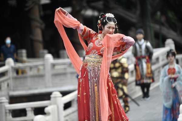 據了解,國風方陣游園是山西省內首次漢服方陣游園。來自全省各地市約200人組成的國風漢服方陣,按照甲胄、唐、宋、明四個主題進行打卡游園,在水鏡臺上的國風戲曲映襯下,華麗高雅、恢宏壯觀,穿越時光隧道!拔业膰L九宮格”大眾攝影比賽,則是一場文化與科技融合的盛宴,集游客體驗、現場感受和文化創意為一體。