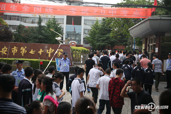 西安70中考點外,考生陸續入場。