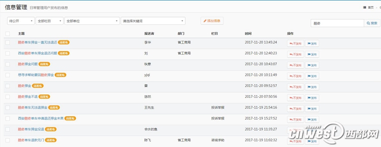 8月以來,西部網(wǎng)“民生熱線”欄目已經(jīng)收到5000多例關于酷騎單車押金難退的投訴。
