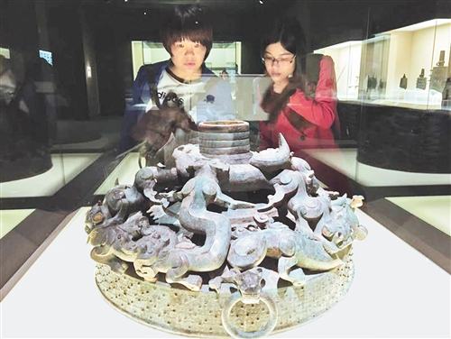 觀眾在參觀上海博物館展出的文物。 吉蕾蕾攝