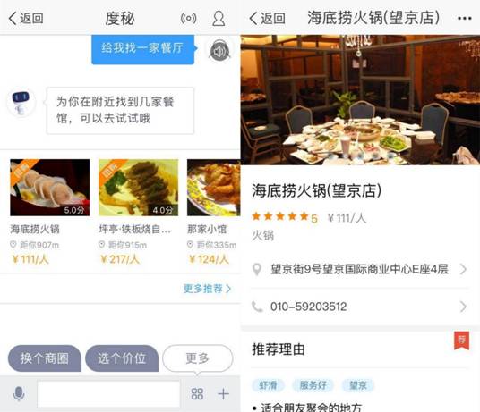 不過,在滿足用戶需求上,依托百度內容、服務及金融生態的度秘,能為用戶提供比Google Assistant更為全面的服務滿足。譬如,當你在度秘上發出訂餐指令時,度秘能提供詳細的價格、距離、地圖、推薦理由,并直接完成在線支付。缺失了天然O2O基因的Google Assistant則難以實現服務閉環。此外,度秘還推出了智能提醒功能,通過明星語音、機器人打電話、設置鬧鐘等多種形式照顧用戶生活。