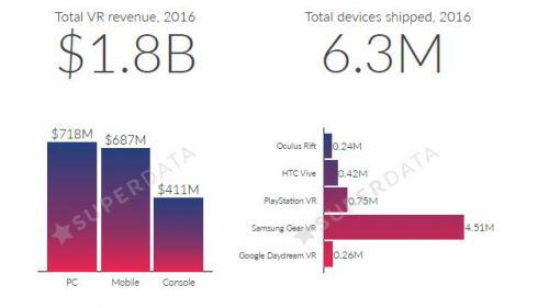 2月6日消息,市場研究分析機構(gòu)SuperData近期聯(lián)合開發(fā)平臺Unity發(fā)布了一份關(guān)于2016年虛擬現(xiàn)實市場的報告。報告中指出,虛擬現(xiàn)實市場在2016年總產(chǎn)值高達18億美元,而VR頭顯設(shè)備的總銷量達到630萬臺。其中,各個VR廠商表現(xiàn)各有不同。