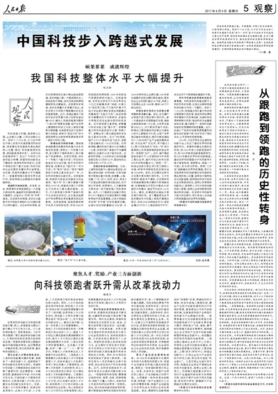 科技是國家強盛之基。中國要強,中國人民生活要好,必須有強大科技。黨的十八大以來,以習近平同志為核心的黨中央著眼于實現“兩個一百年”奮斗目標和中華民族偉大復興的中國夢,把科技創新擺在更加重要位置,發出了建設世界科技強國的號召,推動我國科技發展取得輝煌成就。我國科技發展近年來取得了哪些重大成果?未來我國科技在哪些領域可能領跑全球?如何更好推進世界科技強國建設?本期觀察版圍繞這些問題進行闡述。