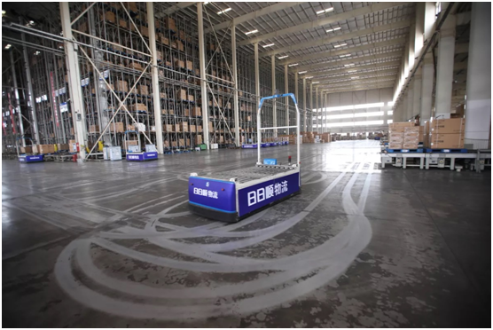 菜鳥與日日順首次展示大件物流無人倉,自動運行的車輛在地面上畫出繁忙軌跡