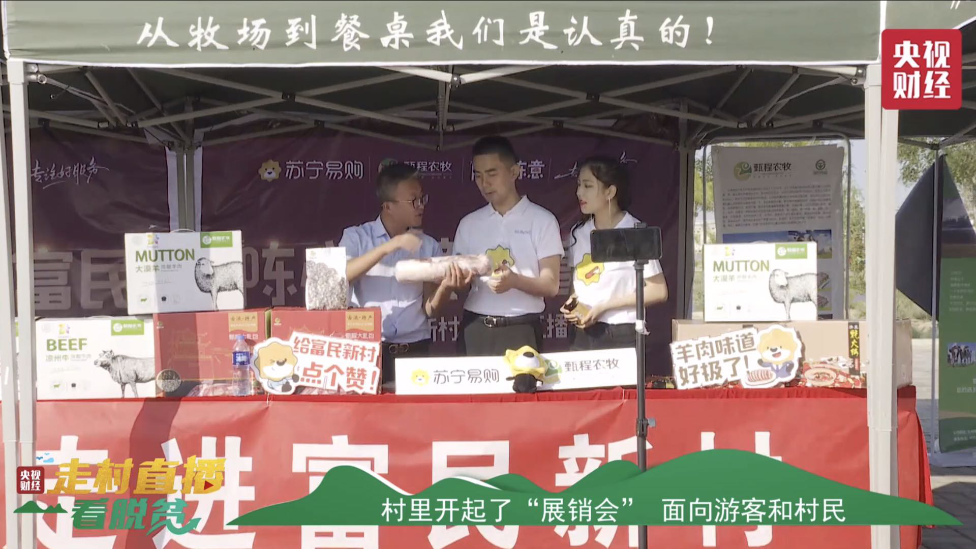 在村里熱鬧的展銷會上,村民售賣起自家的特產。蘇寧易購還在現場開起直播間,甘青寧蘇寧易購總經理陳昌海還現場羊肉帶貨,進行售賣。直播間重點售賣當地的牛羊肉以及衍生品、火鍋底料、牛肉醬、辣椒醬、指頭面等有地方特色產品。據陳昌海介紹,已規劃在武威古浪開設蘇寧易購中華特色館古浪館,中華特色館是立足于解決農產品上行的扶貧模式,通過為農村地區優質農產品打開上行渠道,幫助農戶打開銷售渠道,幫助農產品觸網新生,依托蘇寧全渠道優勢將當地的優質的農產品送到全國消費者的餐桌。