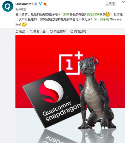 一加5要來了 新機(jī)確認(rèn)采用高通驍龍835芯片