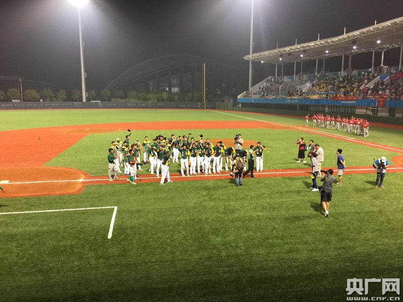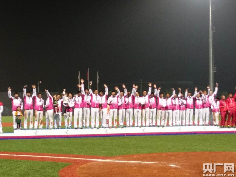 天津棒球隊(duì)站在冠軍領(lǐng)獎(jiǎng)臺(tái)上。 -
