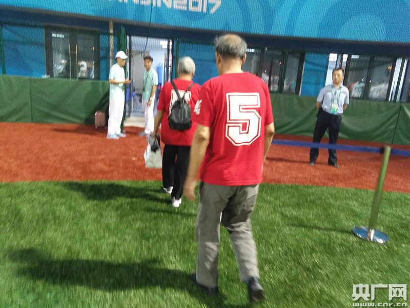 原天津棒球隊(duì)隊(duì)員、第三屆全運(yùn)會(huì)冠軍王銘從醫(yī)院趕來(lái)觀戰(zhàn)助威。 -