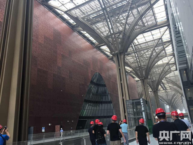 央廣網天津7月28日消息(記者劉陽 楊煜)今天,記者隨政務大V一行來到天津濱海新區文化中心。據悉,濱海新區文化中心規劃總用地45.2公頃,總建筑面積51.3萬平方米,包括地上建筑面積39.9萬平方米,地下建筑面積11.4萬平方米,由濱海大劇院、航天航空博物館、現代工業博物館、濱海美術館、濱海青少年宮、傳媒大廈等組成。津濱海文化中心將于十月左右正式對外開放。
