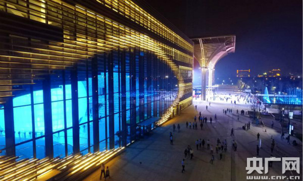• 央廣網天津9月30日消息(記者 劉陽)天津濱海新區文化中心進入最后收尾,9月30日晚20點18分,文化中心開幕前整體燈光點亮,天津濱海中心圖書館、演藝中心、連廊、探索館瞬間點亮,前廣場噴泉也隨著音樂開始變換舞動,時而單柱擎天時而波浪連綿,F場有來自入駐商戶、工程代表、監理公司、物業公司等共計600人共同見證濱海新區點亮新未來。圖為天津濱海新區文化中心全景(劉陽/攝)
