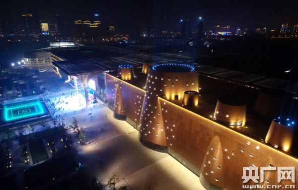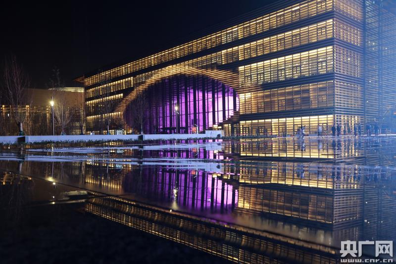 天津濱海新區文化中心開幕前整體點亮 現場光影璀璨