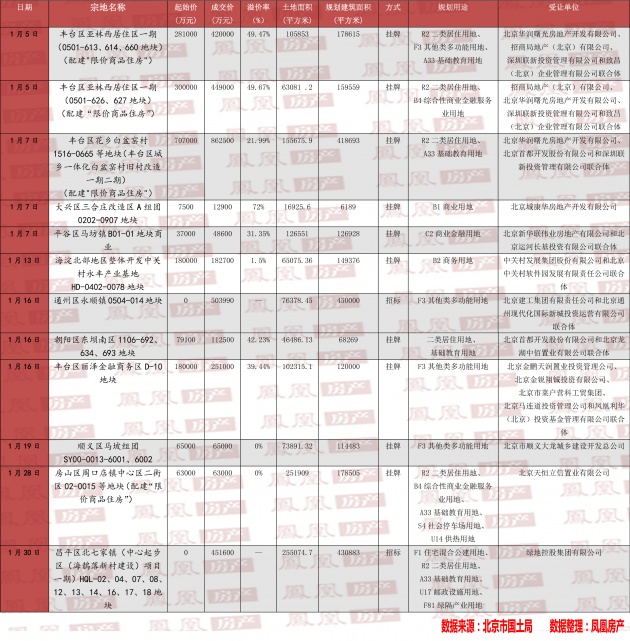 京土地市場1月吸金342.28億 樓面價漲20.6%
