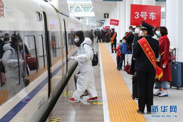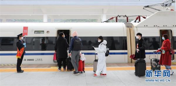 當日,湖北省十堰市193名進京務工人員乘坐G4834次復工專列從十堰東高鐵站出發。他們和從湖北省襄陽市登上本次專列的一批復工人員抵達北京西站后,用人單位將用專車接回并隔離觀察14天后方可上崗務工。