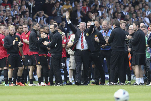 北京時(shí)間5月19日23:00(英國當(dāng)?shù)貢r(shí)間16:00),2012/13賽季英格蘭足球超級(jí)聯(lián)賽第38輪一場(chǎng)焦點(diǎn)戰(zhàn)在山楂球場(chǎng)展開爭(zhēng)奪,曼聯(lián)客場(chǎng)5比5戰(zhàn)平西布羅姆維奇。香川真司先拔頭籌,奧爾森自擺烏龍,巴特納、范佩西和埃爾南德斯各有進(jìn)球。但落后的西布朗最終扳平,莫里森和穆盧姆布各入一球,從切爾西租借而來的盧卡庫上演帽子戲法。這是弗格森執(zhí)教生涯的最后一場(chǎng)比賽,他將在本賽季末退休。