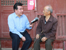 中央臺“走轉(zhuǎn)改”傾聽貴州大型采訪活動啟動,圖為記者王求向當?shù)卮迕耜愘F忠一家了解情況。(中廣網(wǎng)記者 涂傲/攝)