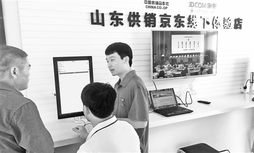 日前,記者來到山東高密市供銷京東線下體驗店,琳瑯滿目的商品映入眼簾,這里有農民們生活中必需的柴米油鹽,也有大件的家用電器,如冰箱、洗衣機、微波爐等商品。同時,村民們還可以在供銷社工作人員的指導下,體驗線上線下結合的一站式購物,享受到家電、家具的配送、安裝等服務。