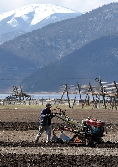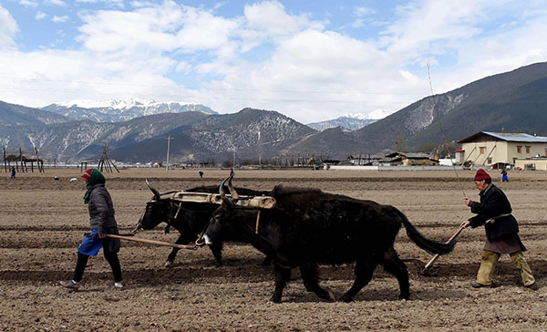目前,云南省迪慶藏族自治州香格里拉市大部分農區進入春耕階段,田間地頭一派繁忙景象。