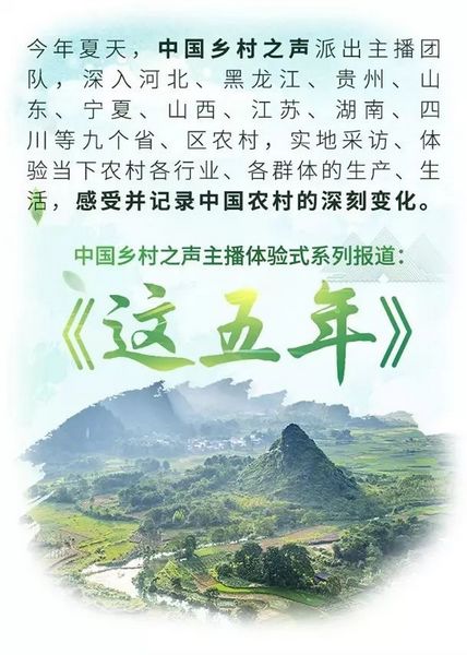 中國(guó)鄉(xiāng)村之聲這五年,見證了十八大以來中國(guó)農(nóng)村日新月異的這五年。為了感受并記錄中國(guó)農(nóng)村這五年的深刻變化,今年夏天,中國(guó)鄉(xiāng)村之聲派出主持人團(tuán)隊(duì),歷時(shí)兩個(gè)多月,深入河北、山東、寧夏、四川、黑龍江等九個(gè)省、區(qū)的農(nóng)村,實(shí)地采訪、體驗(yàn)當(dāng)下農(nóng)村各行業(yè)、各群體的生產(chǎn)、生活。