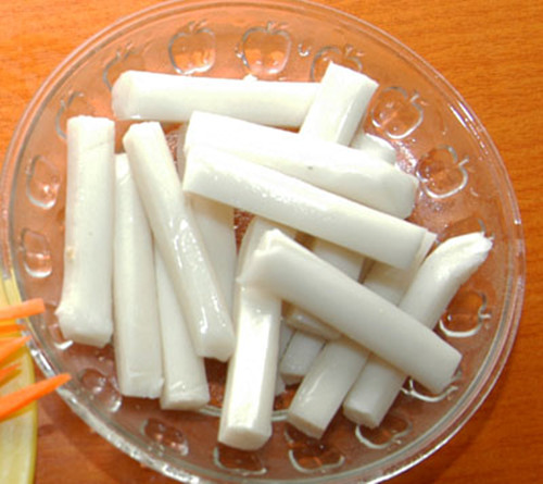 慈城年糕與其他地區年糕的最大區別:潔白如玉,光滑潤口,大小一致,煮而不糊。糖炒年糕:“糖炒炒,油爆爆,吃得嘴角生大泡”的,薺菜年糕:“薺菜肉絲炒年糕,灶君菩薩伸手撈”,無論哪種必定讓你口齒留香,回味無窮。