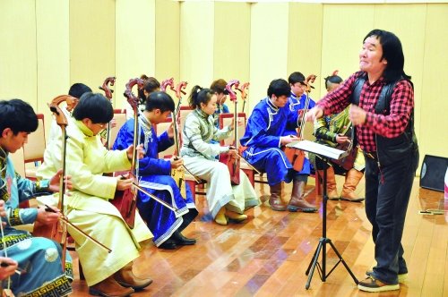 培訓(xùn)學(xué)生們合奏馬頭琴(資料圖片)