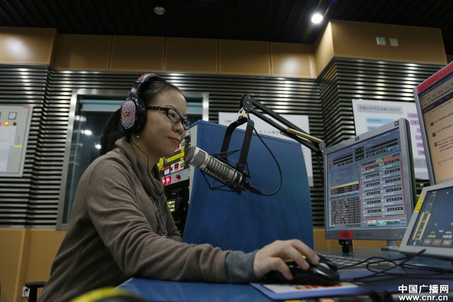 中國之聲主持人蔣術在《中國大舞臺》欄目中為聽眾獻上美妙的音樂。(中廣網 張曈攝)