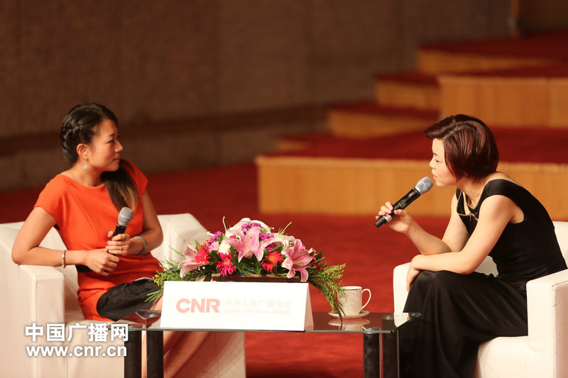鋼琴家陳薩接受主持人采訪。(中廣網記者張曈攝)
