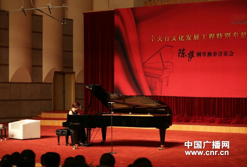中廣網(wǎng)北京7月24日消息 著名鋼琴家陳薩24日晚在中央臺音樂廳舉辦了獨奏音樂會。圖為陳薩在演奏羅伯特·舒曼的《幽默曲》,全場靜聲聆聽,沉醉于柔美的鋼琴樂曲中。
