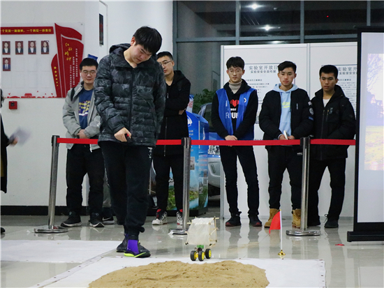 比賽一開始,成員先對試驗(yàn)場地進(jìn)行了數(shù)據(jù)分析,以設(shè)計(jì)出更符合試驗(yàn)場地需要的裝置,接著小組成員各司其職,分別負(fù)責(zé)出謀劃策、具體組裝、操作與調(diào)試。準(zhǔn)備很是周全,可是由于用力過猛,他們的第一個雞蛋還是“壯烈犧牲”了,在距離比賽結(jié)束的20分鐘里,他們決定利用所學(xué)知識改變裝置——采用多面體結(jié)構(gòu)裝置。他們的隊(duì)長,19機(jī)械專業(yè)李登解釋:“裝置每一個面為三角型結(jié)構(gòu),雞蛋則處于裝置的中央,這樣有兩個好處:一是落地時,不論哪一面先著地,雞蛋都不會與地面有直接接觸,二是雞蛋在下落過程中處于懸空狀態(tài),當(dāng)裝置落地時,撞擊力不會傳遞到雞蛋上,從而保證雞蛋無破損。”隊(duì)員們表示,無論是他們組還是其他組,雞蛋如有破碎,所有隊(duì)的人員都是很焦躁的,但失敗乃是成功之母,在冷靜、認(rèn)真分析后,他們最終順利地解決了難題。特別是隨后的遙控運(yùn)輸,他們是融入了所學(xué)的編程知識順利完成的,他們認(rèn)為,這也正是比賽的意義所在:在準(zhǔn)備的過程中會有各種意外,在比賽中意外也會隨時到來,但是始終考量的是他們的團(tuán)隊(duì)心態(tài)與挑戰(zhàn)問題的能力,和破解問題能力。