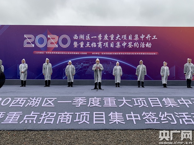 央廣網杭州3月27日消息(記者王權 謝夢潔 通訊員高靜瑋 鄭潔)3月27日,杭州市西湖區舉行2020年一季度重大招商項目集中簽約暨重大項目集中開工活動。儀式上共有40個重點招商項目簽約落戶,涉及總投資171億元,涵蓋數字經濟、新制造業、文化創意、生物醫療等多個產業領域。