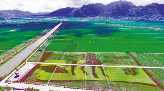 近日,瑞安市馬嶼鎮運用浙江大學先進彩稻技術種植五彩水稻,成功種出《小馬過河》寓言故事彩色水稻圖案,成為當地“美麗鄉村”建設一道亮麗的風景線。圖案占地面積達2萬平方米,為國內同類題材面積較大的稻田景觀。