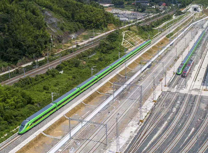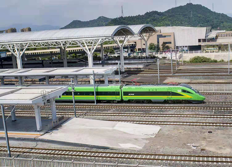 央廣網(wǎng)臺(tái)州6月25日消息(記者 魏煒 通訊員 沈寅 錢振霄)6月25日上午10時(shí)10分,隨著D5472次“綠巨人”復(fù)興號(hào)動(dòng)車組列車?guó)Q笛駛出臺(tái)州西站,以160公里時(shí)速駛向浙中腹地,標(biāo)志著金臺(tái)鐵路正式開通運(yùn)營(yíng)。同時(shí)也意味著金華磐安和臺(tái)州仙居兩地就此結(jié)束了不通火車的歷史,填補(bǔ)了浙江中東部鐵路網(wǎng)的空白。